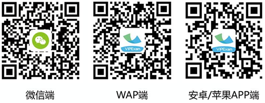 3.移动学习:为便于同学们在不同场景下随时随地使用,VIPExam考试库开创性地提供了“全模式全贯通”服务模式,即同时提供电脑WEB端、微信端、手机WAP端、安卓APP端、苹果APP端等应用端。各应用端数据互联互通,用户仅需注册一个账户,即可畅游VIPExam考试库的全部应用端,实现在手机、平板、电脑应用场景下的无缝切换;并且用户的学习记录与个性化学习资料自动关联更新,真正实现随时随地想学即学。